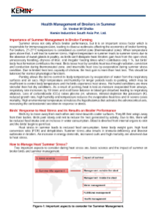 Managemental practices with focus on health management, usage of additives like organic chromium along with Vitamin C will minimize the heat stress and improve the economical benefits to broiler producers. Immunomdulators like 1,3 beta glucan will improve the immunity of flocks during heat stress conditions.