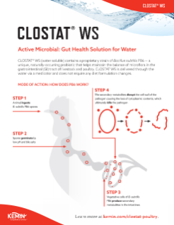 CLOSTAT® contains a unique, proprietary spore-forming strain of Bacillus subtilis PB6 which was isolated from chickens who had survived a high exposure to Clostridium perfringens in the environment. PB6 attacks and kills clostridia and other pathogenic bacteria which can negatively impact the gastrointestinal (GI) tract. Because PB6 is a spore forming bacteria, it is compatible with most other ingredients and is able to survive harsh conditions, such as the acidity of the stomach or the temperatures associated with pelleting. With multiple product delivery options, CLOSTAT is the industry leader in reducing intestinal pathogen colonization leading to sickness in poultry.