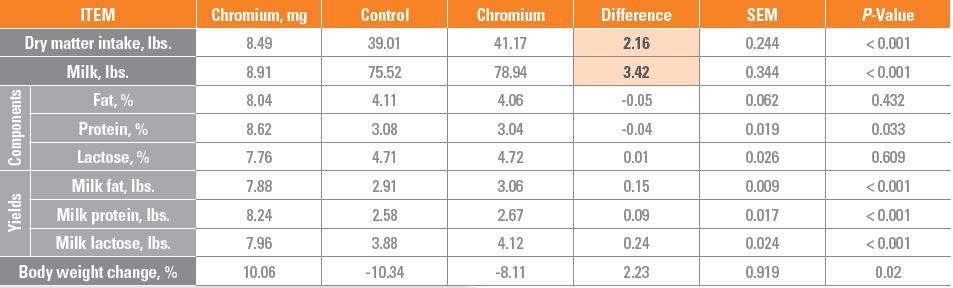 Kemin recently conducted a thorough meta-analysis of 16 peer-reviewed scientific journal articles that evaluate the impact of chromium supplementation in dairy cattle. The findings not only confirm the benefits of chromium, but also provide a comprehensive statistical analysis of the advantages in production and profitability that dairy producers stand to gain. The data speaks for itself.