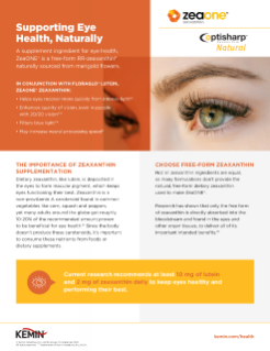 When formulated into a supplement alongside FloraGLO® Lutein, ZeaONE®/OPTISHARP™ Natural Zeaxanthin offers a multitude of benefits for eye health: