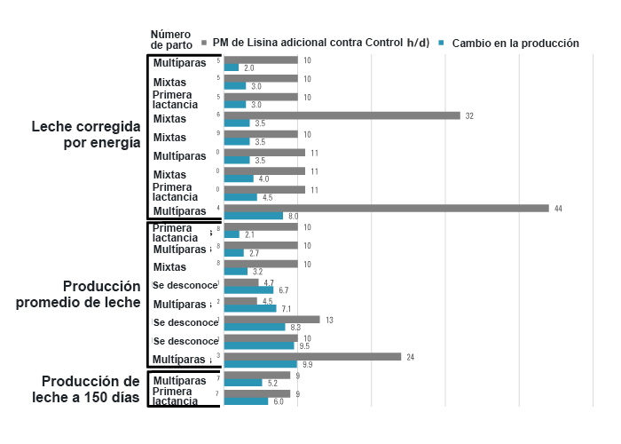 Figura 3. Efecto del aumento del suministro de PM de lisina en la producción