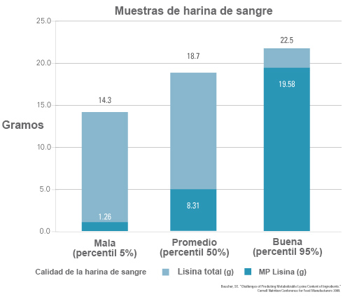 Figura 1. Diferencia entre las harinas de sangre de buena y mala calidad, con base en la cantidad de PM de lisina que aporta