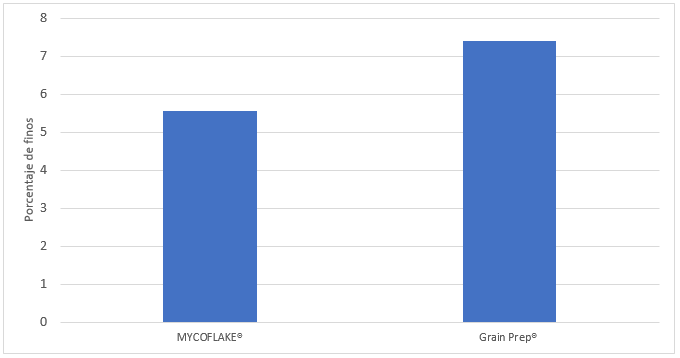 A pesar de los mejores esfuerzos de los operadores de las cámaras de vapor para eliminar los finos, el vapor por sí solo rara vez reducirá el nivel de los finos por debajo del 10 % en los granos rolados finales. Al añadir surfactantes, los operadores pueden reducir los finos muy por debajo del 10 %, pero no todos los surfactantes son iguales. En un estudio que utilizó MYCOFLAKE y Grain Prep®, el porcentaje de finos se redujo del 7,41 % cuando se utilizó Grain Prep al 5.55 % cuando se utilizó MYCOFLAKE durante el proceso de rolado.1